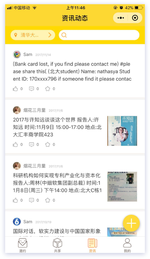 资讯 - 校内信息,校外活动,学会讲座,餐饮娱乐都为你。