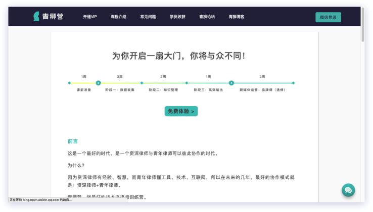 青狮营,汇聚一流的技术派律师,运用一流生产力工具、技术驱动法律前行;沉淀法律智慧,乐于分享开源;统一工作模式,开展无界协作。
